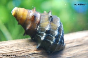Brotia armata – Igelschnecke zeigt einen stacheligen Schalenrand. Das Tier nutzt diesen scharfen Rand als Schutz vor Fressfeinden. Die stachelige Struktur ist auch bei verwandten Arten zu beobachten, wirkt jedoch hier deutlich stärker ausgeprägt. Diese Besonderheit wird als evolutionäre Anpassung betrachtet, die das Überleben in wechselhaften Gewässern fördern kann. Die Art lebt in Süßwasserhabitaten und trägt zur Stabilität lokaler Nahrungsnetze bei. Wissenschaftliche Studien bestätigen diesen Zusammenhang, wenngleich noch weitere Details erforscht werden.