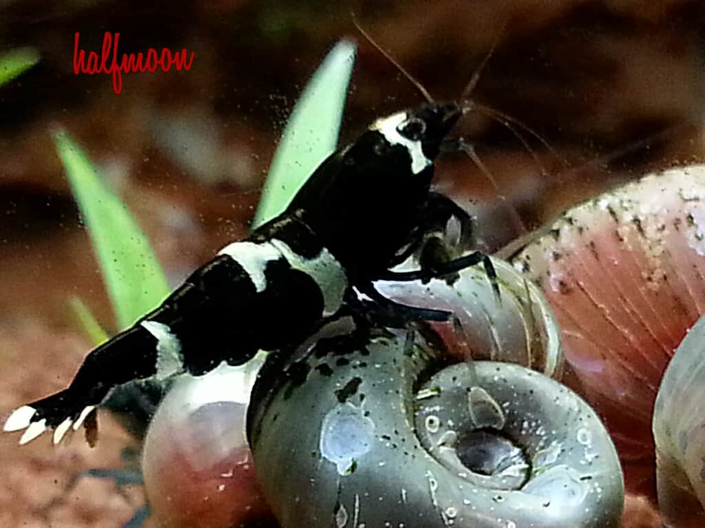 Caridina cf. cantonensis – Shadow Bee gehört zur Familie Atyidae und ist eng mit anderen Caridina-Arten verwandt. Ihr Körper zeigt einen halbtransparenten Hintergrund, der von dunklen Mustern und schattierten Flecken durchzogen ist. Die Schale wirkt glatt und weist feine Markierungen auf. Durchschnittlich erreicht das Tier eine Körperlänge von ca. 3 cm. Die Farbe kann je nach Licht und Wasserbedingungen variieren; dies bleibt jedoch oft konsistent durch ihre genetische Ausstattung, wie es auch auf my-fish.org berichtet wird.