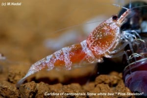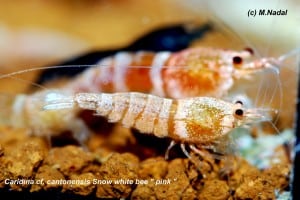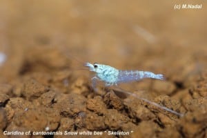 Caridina cf. cantonensis – snow white gehört zur Familie der Atyidae. Ihr wissenschaftlicher Name lautet Caridina cf. cantonensis. Die Art ist eine Untergruppe der Garnelen im Gewässer. Ihr Körper misst im Schnitt etwa 2,5 Zentimeter. Die Schale ist meist weiß und durchsichtig. Die zarten Farben helfen beim Schutz in ihrem Lebensraum.