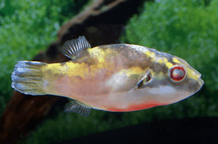Carinotetraodon borneensis – Kugelfisch bewohnt in seinem natürlichen Lebensraum vorwiegend träge fließende Süßwassergebiete im tropischen Regenwald, wie sie auf Borneo vorkommen. In diesen Gewässern herrschen oft weiche, leicht saure Wasserparameter mit relativ niedrigen Sauerstoffwerten und konstant warmen Temperaturen vor, während ein sumpfiges Ufer- und Unterwasserterrain mit dichter Vegetation und zahlreichen Versteckmöglichkeiten typisch ist. Diese natürlichen Gegebenheiten, die durch reichlich organische Substanz und einen hohen Humusgehalt geprägt sind, bieten dem Kugelfisch optimale Bedingungen, um sich in den komplex strukturierten Biotopen der Regenwälder zu entwickeln und zu überleben.