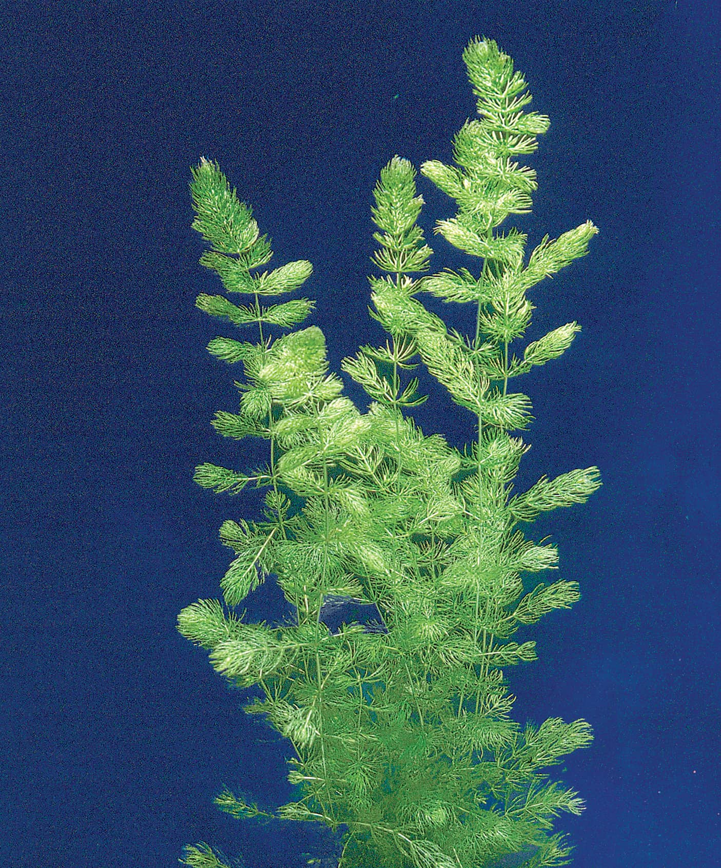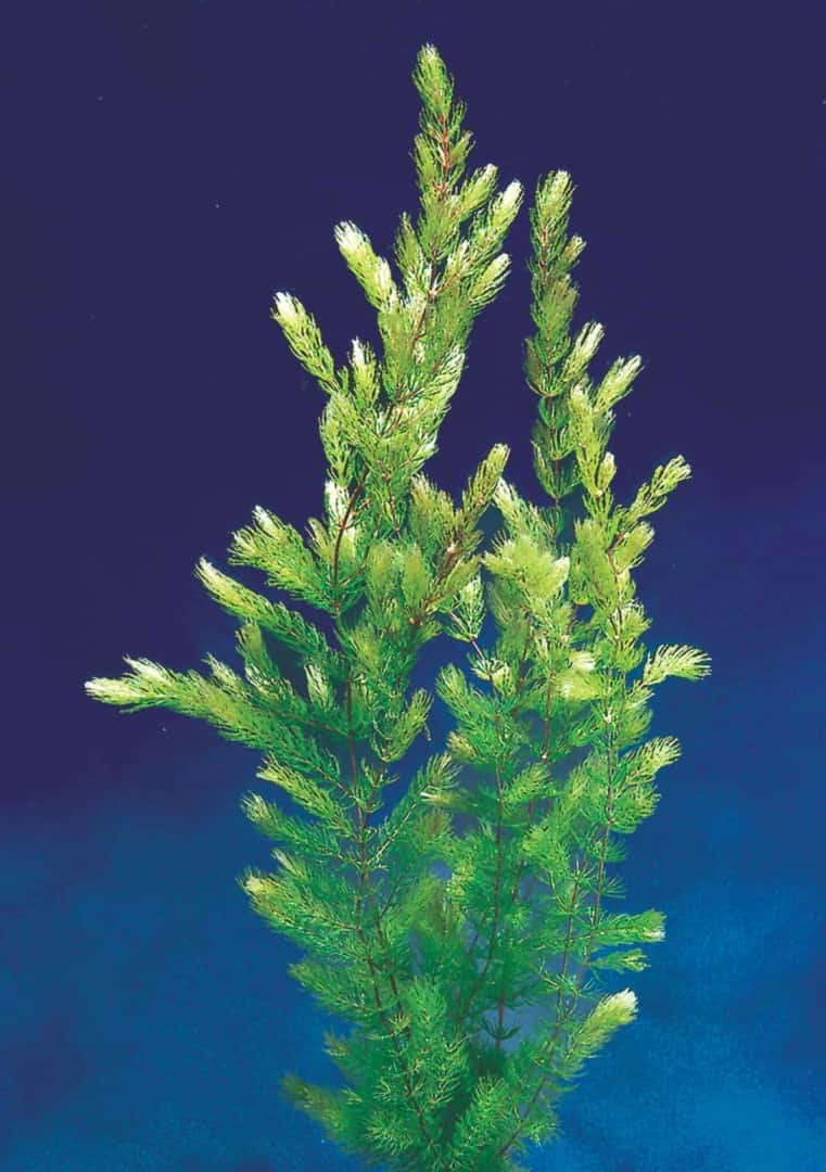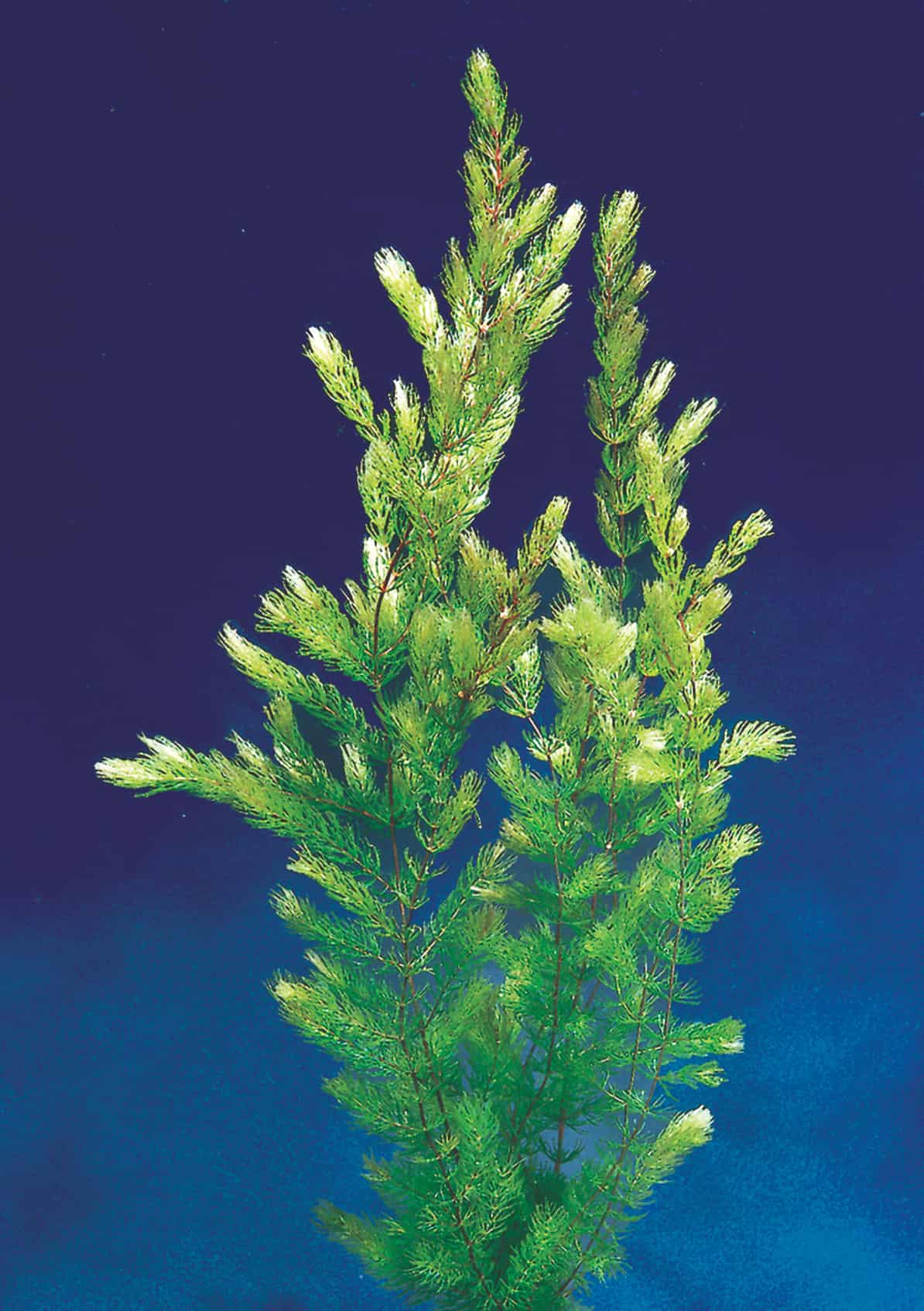 Das Hornkraut besticht durch seine feingliedrigen, fadenartigen Blätter, die in dichten, sternförmigen Anordnungen aus der Mitte des Stängels hervorgehen. Es besitzt keine echten Wurzeln, sondern bildet feine, faserige Strukturen, mit denen es Nährstoffe und Mineralien direkt aus dem Wasser aufnimmt. Die blattähnlichen Strukturen wirken federleicht und verleihen der Pflanze ihr charakteristisches, fast wolkenartiges Erscheinungsbild. Die transparente Erscheinung und die natürliche Flexibilität der Zellstruktur ermöglichen es Ceratophyllum demersum, sich rasch an wechselnde Lichtverhältnisse anzupassen.