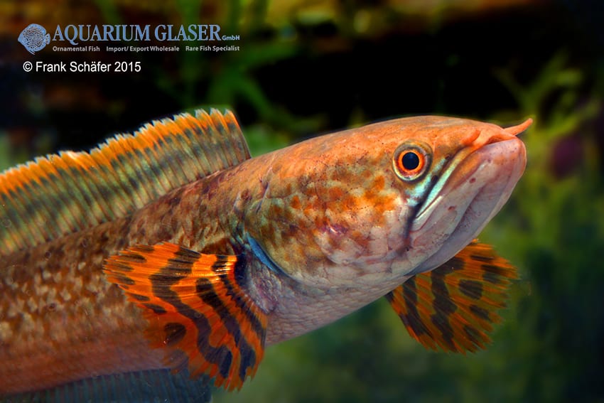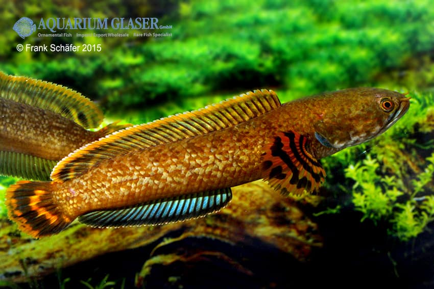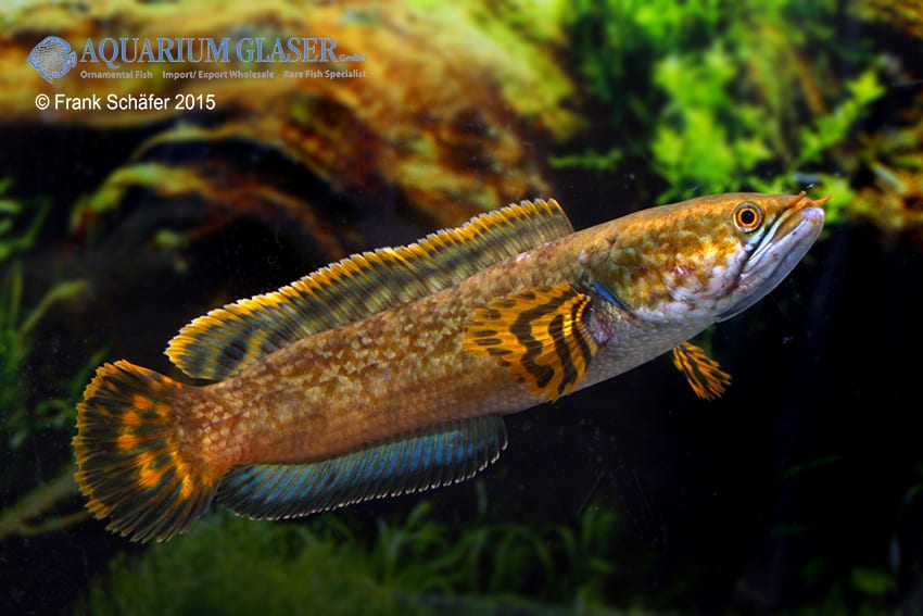 Channa aff. bleheri „Flame Fin/Chocolate“ ist ein kleiner Vertreter der Familie Channidae (Schlangenkopffische). Der wissenschaftliche Name wird mit „aff.“ angegeben, da seine genaue Systematik noch geklärt ist. Der Fisch zeigt eine warme, braun-orange bis rötliche Färbung mit dunklen Streifen und charakteristisch feurig leuchtenden Flossen. Er erreicht durchschnittlich etwa 15–20 cm Länge. In seinem natürlichen Lebensraum, in langsam fließenden Flussläufen und Teichbereichen Indiens und Südostasiens, findet man dichte Vegetation und wechselhafte Wasserstände. Diese Umgebungen bieten viele Verstecke und Nahrungsquellen. Ein besonderes Verhalten ist die Freilaichemortung mit gemeinsamer Brutpflege beider Eltern – anders als manche anderen Zwergschlangenkopffische ist Channa bleheri kein Maulbrüter und bewacht seine Brut offen im Freiwasser. Zudem passt sich der Fisch gut an wechselnde Sauerstoffwerte an. Im Aquarium wird ähnlich strukturiertes Wasser mit reichlich Versteckmöglichkeiten empfohlen. Dabei sollten stabile Wasserparameter und regelmäßige Pflege im Vordergrund stehen.