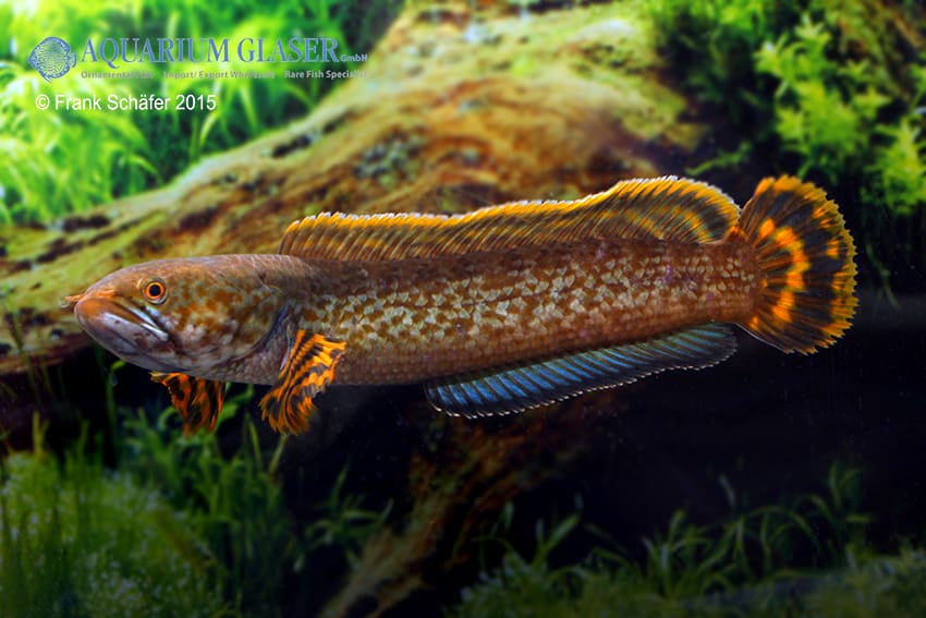 Channa aff bleheri Flame Fin Chocolate besticht durch feurig leuchtende Flossen und einen auffallend schlangenartigen Kopf. Ihr aktives, teils territoriales Verhalten und der Bedarf an vielfältigen Verstecken machen sie zu einem faszinierenden Highlight in kunstvoll gestalteten Aquarien.
