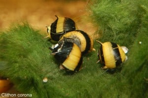 Dieses Tier eignet sich gut als friedlicher Bewohner in einem modernen Aquarium. Es zeigt wenig Aggression und lebt gern in einem artgerecht gestalteten Becken. Clithon corona sollte mit friedlichen Fischen oder kleinen Wirbellosen zusammengehalten werden. Geeignete Mitbewohner sind Zwerggarnelen, kleine Salmler und zurückhaltende Bettfische. Aggressive Räuber können das Tier gefährden und sollten daher vermieden werden. Verstecke, Pflanzen und Felsen bieten Rückzugsräume und fördern das ökologische Gleichgewicht.