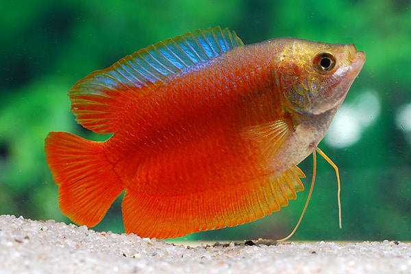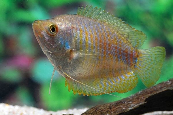 Colisa lalia überzeugt mit intensiven Farbnuancen und filigranen, fast durchscheinenden Flossen. Ihr ruhiges, gemeinschaftliches Schwarmverhalten, elegante Schwimmbewegungen und charmante Präsenz im Aquarium heben sie gekonnt von anderen Arten ab.