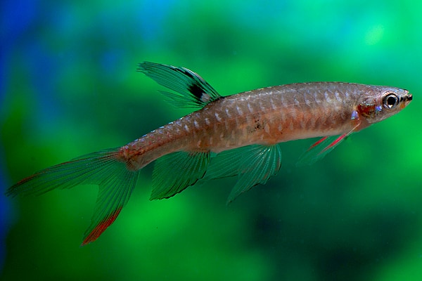 Copella arnoldi – Spritzsalmler besticht durch ein einzigartiges Fortpflanzungsverhalten, bei dem Männchen die Eier mit gezielten Wasserstrahlen umspielen. Ihr schillernder Körper, zarte Flossen und verspieltes Schwimmverhalten heben sie von anderen Zierfischen ab.