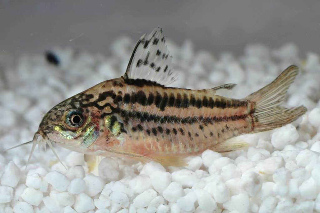 Corydoras elegans gehört zur Familie der Panzerwelse und ist in der Gattung Corydoras einzuordnen. Der Schöne Panzerwels erreicht im Schnitt 5 bis 6 cm Länge. Sein Körper zeigt einen glatten Panzer mit feinen Schuppen, die ihm Schutz bieten. Die Fische leben meist bei Temperaturen von etwa 24 bis 26 °C in warmen, flachen Gewässern. In seinem natürlichen Lebensraum fließt das Wasser meist langsam und ist von dichtem Pflanzenwuchs umgeben. Die Art sucht am Gewässerboden nach kleinen Futterresten und nutzt lange, feine Fühler zur Nahrungssuche. Diese Anpassung hilft, auch in sauerstoffarmen Gewässern zu überleben. Er lebt in Gruppen, was Schutz und bessere Nahrungsfindung ermöglicht. Im Aquarium wird ein Sandbett und reichlich Pflanzen empfohlen, um die natürlichen Bedingungen nachzuahmen. Es ist wichtig, das Wasser sauber zu halten und regelmäßig zu wechseln. Quellenangaben variieren, daher ist eine regelmäßige Überprüfung der Daten sinnvoll.