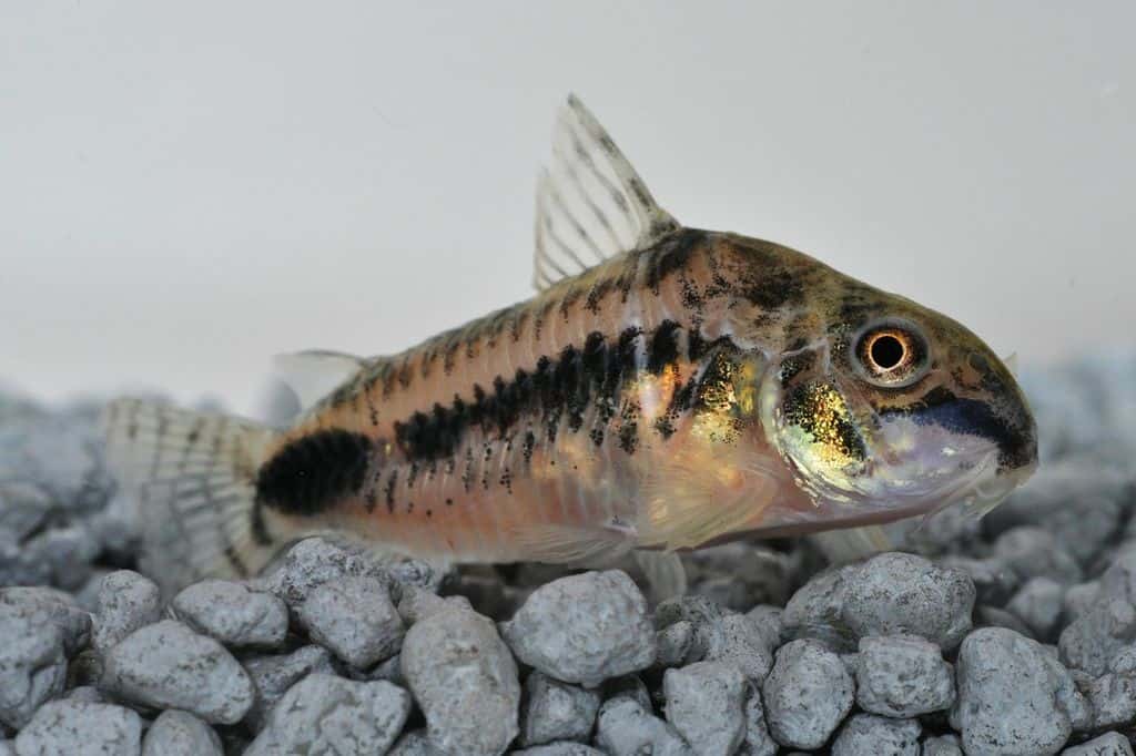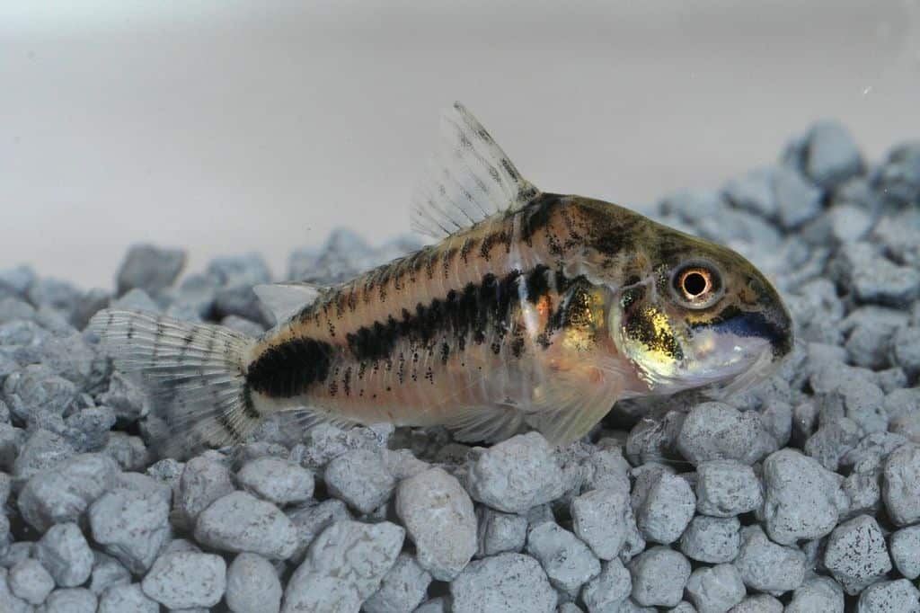 Corydoras habrosus beeindruckt durch seine zarte Färbung, feine Streifen und das elegante Schwarmverhalten. Der kleine, friedliche Bodensucher erkundet den Aquarienboden agil und fördert das harmonische Miteinander im Becken.