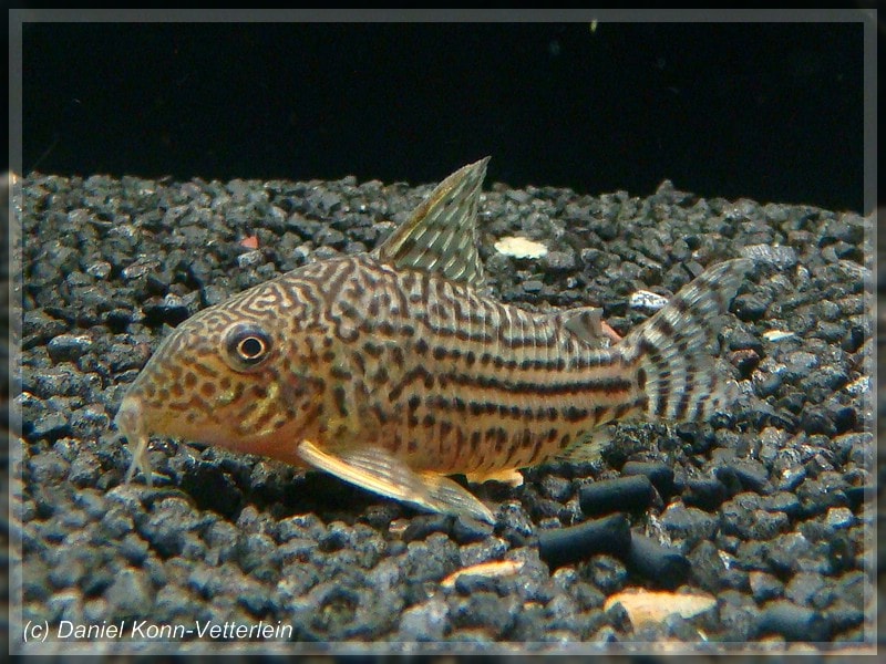 Diese Art ist ein typischer Omnivor, der in der Natur sowohl tierische als auch pflanzliche Nahrung aufnimmt, weshalb eine reine Pflanzen- oder Fleischkost ungeeignet wäre: Bei ausschließlicher Pflanzenkost fehlen wichtige tierische Proteine, während reine Fleischkost zu Verdauungsproblemen und Mangelerscheinungen führen kann. Zu den natürlichen Nahrungsquellen zählen unter anderem kleine Krebstiere und Insektenlarven, die am Gewässergrund gesucht werden. Im Aquarium sollte das Hauptfutter etwa 70–80 % der Tagesration ausmachen und aus hochwertigem Flocken- oder Granulatfutter bestehen, das speziell auf die Bedürfnisse bodenbewohnender Zierfische abgestimmt ist. Für eine abwechslungsreiche Ernährung empfiehlt sich zwei- bis dreimal pro Woche die Gabe von Lebend- oder Frostfutter wie Artemia oder roten Mückenlarven sowie blanchiertem Gemüse, beispielsweise Zucchini oder Spinat, das in kleinen Portionen angeboten werden kann. Die Fütterung sollte idealerweise zwei- bis dreimal täglich in Mengen erfolgen, die innerhalb von drei Minuten vollständig aufgenommen werden, wobei Futterreste stets zeitnah zu entfernen sind, um Wasserbelastung zu vermeiden. Da diese Fische zu Überfressen neigen, ist auf kontrollierte Portionierung besonders zu achten, um Übergewicht und daraus resultierende Gesundheitsprobleme zu verhindern.