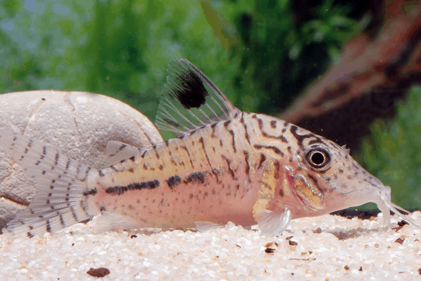 Corydoras leopardus besticht durch ein markantes Leopardenmuster und aktives Schwarmverhalten. Er durchkämmt den Beckenboden, agiert gesellig und nutzt zahlreiche Versteckmöglichkeiten. Eine artgerechte Bodeneinrichtung und behutsame Pflege fördern sein Wohlbefinden.