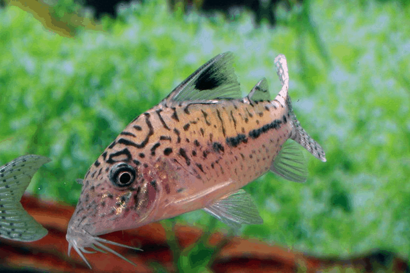 Corydoras leopardus, gemeinhin Leopardpanzerwels genannt, gehört zur Familie der Callichthyidae und zur Gattung Corydoras. Der Fisch erreicht im Schnitt etwa 7 cm Länge und zeigt braune bis schwarze Flecken, die an Leopardenfell erinnern. Die Flossen haben oft helle Ränder, was sein äußeres Erscheinungsbild prägt. Er kommt aus flachen, warmen Gewässern Südamerikas, meist mit sandigem Boden und mäßiger Strömung. Dort bilden sich Gruppen, um gemeinsam nach Nahrung im Bodengrund zu suchen und sich vor Fressfeinden zu schützen. Eine besondere Verhaltensanpassung ist das gemeinsame Graben im Kies, das auch die Nahrungsaufnahme erleichtert. Zudem besitzt er Anpassungen, die ihm das Überleben in sauerstoffarmen Gewässern ermöglichen. Im Aquarium wird ein sandiger oder feiner Kiesboden mit Wasserwerten um den neutralen pH-Wert empfohlen, bei durchschnittlichen Temperaturen von 24 Grad Celsius.