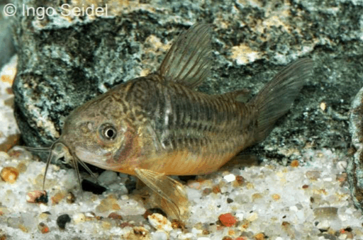 Corydoras undulatus besticht durch gewellte, markante Körperlinien und robusten Panzer. Der gesellige Fisch streift aktiv am Beckenboden umher, zeigt starkes Schwarmverhalten und ist pflegeleicht in Gemeinschaftsaquarien. Es sind keine besonderen Merkmale bekannt.
