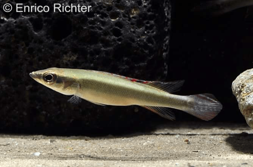 Crenicichla notophthalmus beeindruckt mit einem schlanken Körper, dezentem Farbspiel und leicht gerillten Flanken. Der agile, räuberische Fisch zeigt ausgeprägtes Revierverhalten und nutzt geschickt vorhandene Verstecke. Eine naturnahe Bepflanzung schafft ideale Rückzugsmöglichkeiten. Es sind keine besonderen Merkmale bekannt
