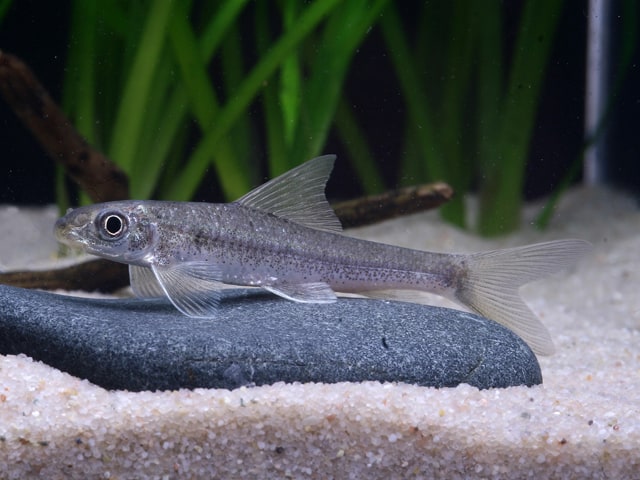 Der Crossocheilus latius – Glimmerlabeo beeindruckt mit einem schimmernden, schlanken Körperbau und eleganten Linien. Als aktiver Algensammler sorgt er für Sauberkeit im Becken und zeigt ein ruhiges, geselliges Verhalten. Es sind keine besonderen Merkmale bekannt.