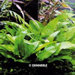 Die breitblättrige Wendtii besitzt dicke, ledrige Blätter mit einer welligen Oberfläche. Die Blätter erreichen eine maximale Länge, wobei sie meist oval bis spathuliförmig sind. Ihre Farbe variiert von grün bis braun, je nach Licht und Nährstoffverfügbarkeit. Die Blattnerven sind leicht erkennbar und betonen die Struktur der Blätter. Diese Merkmale geben der Pflanze einen robusten und natürlichen Eindruck und machen sie zu einem beliebten Element in Aquarien.