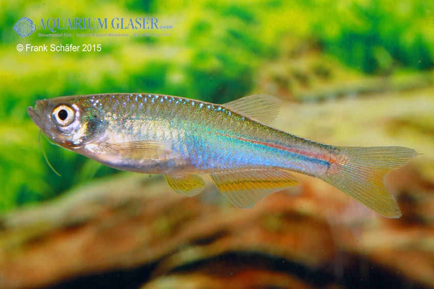 Der Schillerbärbling zeigt ein faszinierendes Schillern, das durch silbrig-weiße Linien betont wird. Sein lebhaftes Schwarmverhalten und aktive Interaktion machen ihn zu einem beeindruckenden, pflegeleichten Zierfisch, der das Aquarium bereichert.
