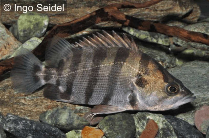 Der Tigerbarsch, wissenschaftlich Datnioides polota (auch quadrifasciatus genannt), gehört zur Familie Datnioididae. Er hat einen schlanken, länglichen Körper mit breiten, quer verlaufenden Streifen, die im Durchschnitt 18 bis 22 cm Körperlänge anzeigen. Sein Körper ist meist gräulich bis bräunlich gefärbt, mit hellen bis dunklen Mustern, die als Tarnung in seinem natürlichen Lebensraum dienen. In flachen, lauwarmen Flussabschnitten tropischer und subtropischer Regionen lebt er meist in sandigen oder schlammigen Gewässern mit dichtem Pflanzenwuchs. Dort helfen ihm seine schnellen Reaktionen und kräftigen Kiefer, um Beute gezielt zu ergreifen. Als ambushartiger Jäger setzt er auf kurzfristige Geschwindigkeit und Überraschung, was ihm einen Überlebensvorteil bringt. Im heimischen Aquarium bevorzugt man Temperaturen von etwa 26 bis 28 °C und einen neutralen pH-Wert um 7,0. Studien und Beobachtungen deuten aber darauf hin, dass manche Angaben zur Art noch Unsicherheiten aufweisen.