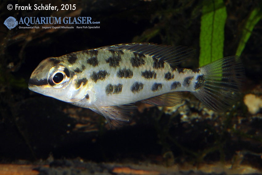 Dicrossus foirni besticht durch ein markantes, schachbrettartiges Muster und feine Konturen. Der gesellige Fisch zeigt sensibles Sozialverhalten im Gruppenleben und wählt behutsame Pflege sowie dichte Rückzugsmöglichkeiten. Es sind keine besonderen Merkmale bekannt.