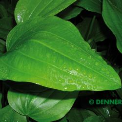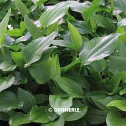 Der Argentinische Froschlöffel besitzt breite, lanzenförmige Blätter mit leicht gezacktem Rand. Die Blattrückseite erscheint oft matter und leicht rau, was auf spezielle Zellen zurückzuführen ist. Die markanten Blätter erreichen eine Länge von bis zu 30 Zentimetern. Charakteristisch sind die tief eingeschnittenen Blattnerven, welche bei genauer Betrachtung die individuelle Blattstruktur unterstreichen. Hierbei handelt es sich um wesentliche Merkmale für die Identifikation der Art.