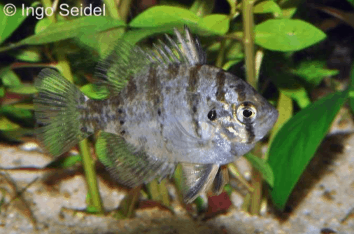 Enneacanthus chaetodon, der Scheibenbarsch, gehört zu den Knochenfischen und wird in die Ordnung der Perciformes eingeordnet. Er misst im Schnitt etwa 8 cm und zeigt eine ovale Körperform mit glatter Haut. Die Farbe ist silbrig mit einem Hauch von Blau, und seine Rückenflosse weist meist 11 bis 12 Strahlen auf. Im natürlichen Lebensraum lebt er in klaren, flachen Bächen und kleinen Seen, wo Pflanzenreste und Steine Schutz bieten. Dort jagt er kleine Wirbellose und Krebstiere, was ihm Nahrung und Energie sichert. Eine Besonderheit ist seine Anpassung an wechselnde Sauerstoffwerte, die sein Überleben auch in Zeiten von Stress ermöglicht. Im Aquarium benötigt der Scheibenbarsch stabile Bedingungen mit ca. 24 °C und einem pH-Wert rund 7,5. Eine leichte Wasserbewegung im Becken kommt seiner Natur entgegen. Diese Angaben beruhen vorwiegend auf Informationen von my-fish.org und werden von Zierfischportalen bestätigt, wenngleich einzelne Werte in der Fachliteratur variieren können.