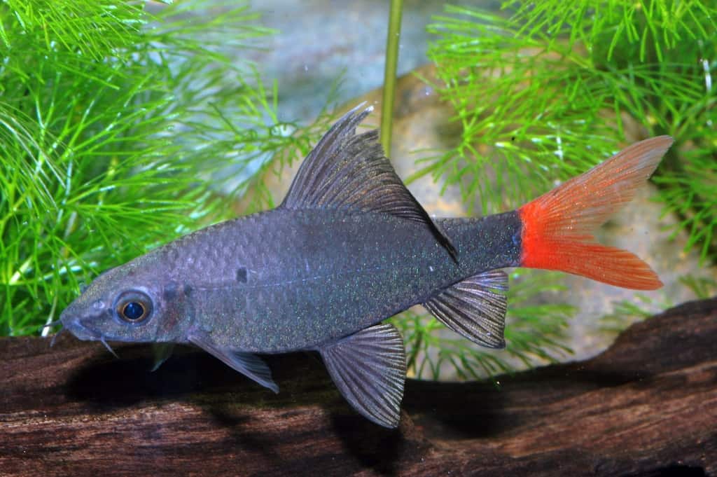 Epalzeorhynchus bicolor gehört zur Familie der Cypriniden im Ordnungssystem der Cypriniformes. Der Fisch, der oft als Feuerschwanz bezeichnet wird, zeigt einen schmalen, silbernen Körper mit einem leuchtend roten Schwanz und dunklen Streifen am Rücken. Der Durchschnittswert der Körperlänge liegt bei ca. 15 cm. Seine Flossen und der schlanke Körperbau deuten auf gute Schwimmfertigkeiten in fließendem Wasser hin. In seinem natürlichen Lebensraum, der in den fließenden, warmen Bergbächen Südostasiens liegt, kommt es zu einem steten Austausch von Wasser, was den Sauerstoffgehalt hoch hält. Der Feuerschwanz zeigt ein aktives und territoriales Verhalten. Er bewegt sich flink im Wasser und nutzt schnelle Schwimmimpulse, um Futter zu ergattern. Diese Anpassungen helfen ihm, in wechselnden Wasserbedingungen zu überleben. Im Aquarium gedeiht er am besten bei Temperaturen zwischen 24 und 28 °C, mit einem pH-Wert nahe 7 und moderater Wasserdurchfluss. Obwohl einige Quellen leichte Abweichungen bei Messwerten nennen, stimmen die meisten Angaben über sein Aussehen und Verhalten überein.