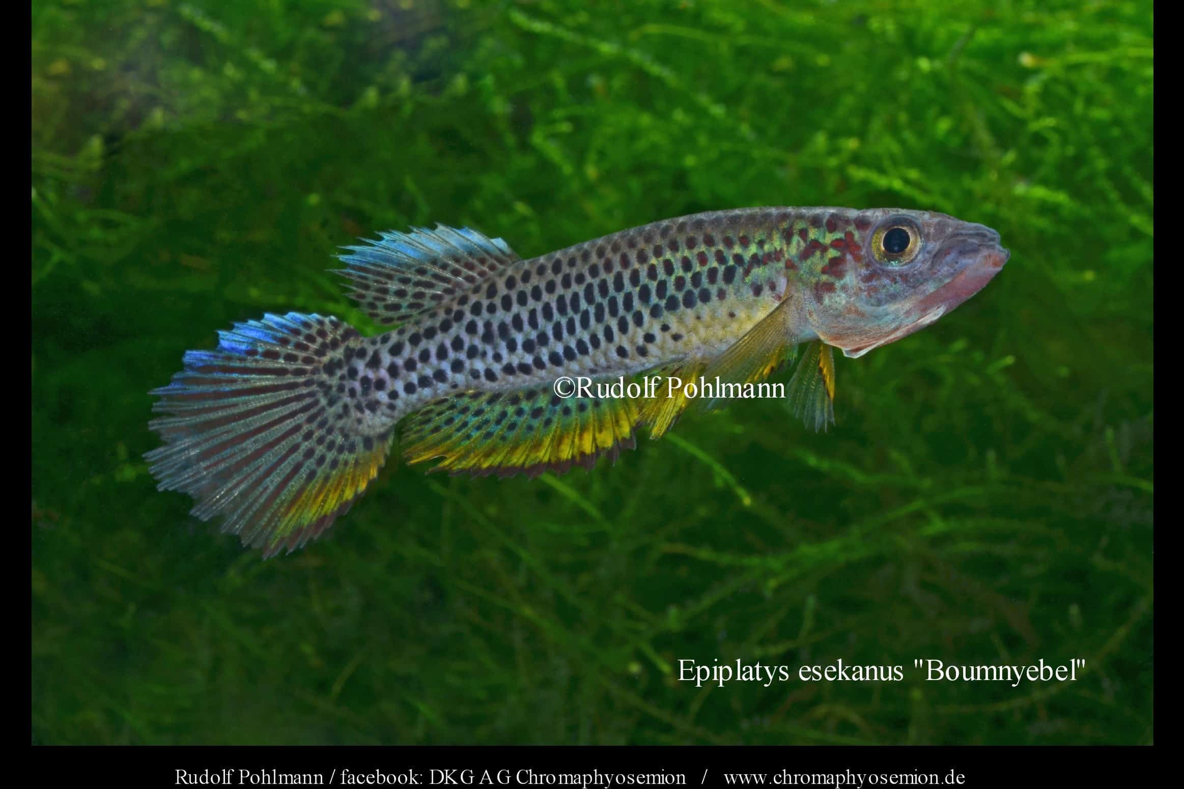 Epiplatys esekanus, auch Eseka-Hechtling genannt, gehört zur Ordnung der Anabantiformes und zur Familie Nothobranchiidae. Der Fisch erreicht im Schnitt eine Länge von etwa 6 cm und zeigt einen schlanken Körper. Seine leuchtende Färbung wechselt zwischen dunklen und hellen Tönen, die in kleinen Flecken oder Streifen auftreten. Flossen und Schwanz weisen mittlere Längen auf, die wenn auch variabel, durchschnittlich gut proportioniert sind. In seinem natürlichen Lebensraum lebt er in flachen, warmen Flüssen und Teichen tropischer Regionen. Dabei herrscht ein mittlerer Wassertemperaturbereich von rund 25 °C, der sein Überleben sichert. Er zeigt territoriales Verhalten und führt einfache Paarungstänze aus, um Partner anzulocken. In seinem Ökosystem sind pflanzliche Rückzugsorte und Wasserströmungen wichtige Faktoren. Im Aquarium benötigt er viel Grün und Versteckmöglichkeiten, um Stress zu vermeiden. Quellen wie my-fish.org und weitere Informationen von g-hoener.de sowie aquariumglaser.de liefern Basisdaten, wobei bei einigen Messwerten leichte Abweichungen beobachtet wurden.