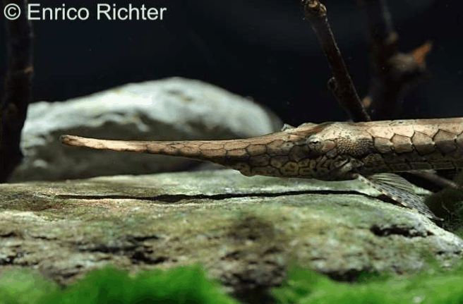 Farlowella platorynchus besticht durch filigranen Körperbau und verlängerten Schnabel, der an Zweige erinnert. Er ernährt sich vorrangig von Algen, passt sich dank seiner Tarnfärbung harmonisch im Pflanzenambiente an und benötigt viele Verstecke.