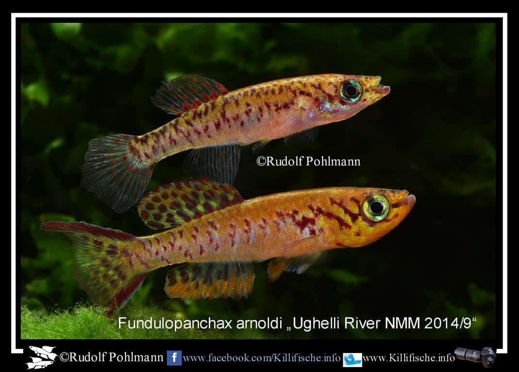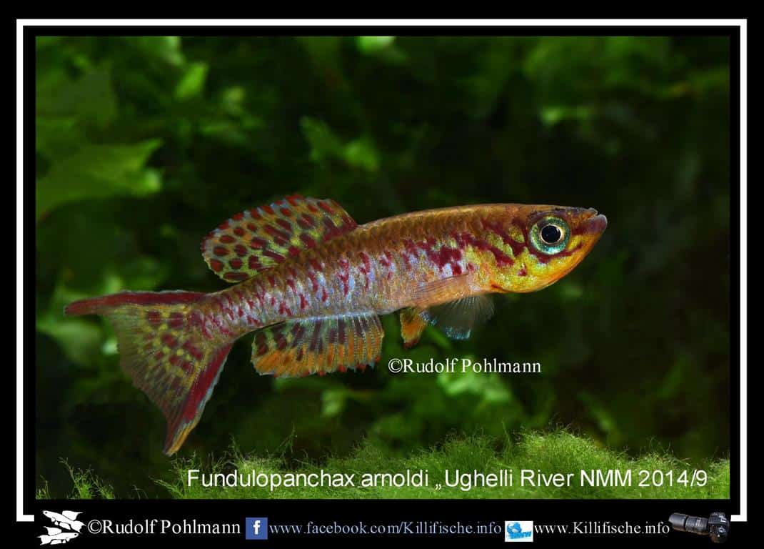 Fundulopanchax arnoldi besticht durch lebhafte Farbakzente und ein ausgeprägtes Balzverhalten, bei dem die Männchen ihre prächtigen Flossen eindrucksvoll zur Schau stellen. Sein filigranes Schuppenmuster und die unkomplizierte Haltung heben ihn von vielen anderen Zierfischen ab. Es sind keine besonderen Merkmale bekannt