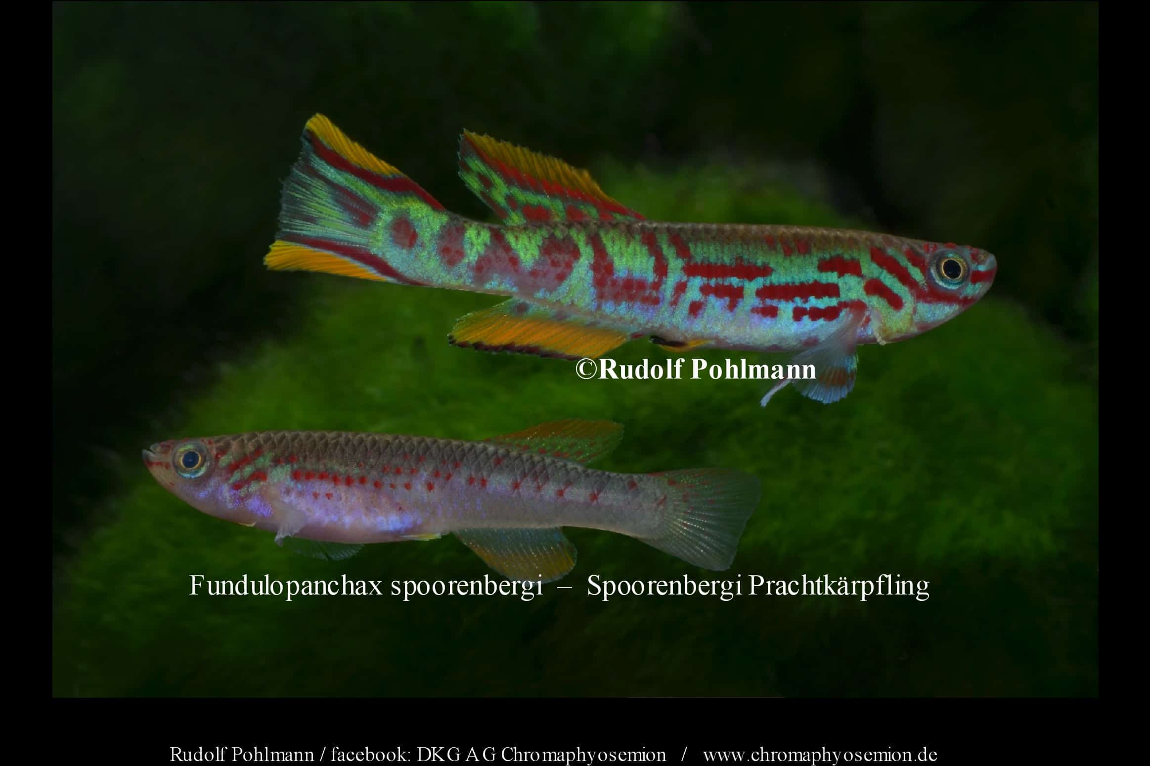 Fundulopanchax spoorenbergi gehört zur Ordnung Cyprinodontiformes und der Familie Nothobranchiidae. Dieser ansprechende Fisch wird oft als Spoorenbergi Prachtkärpfling in Aquarien bezeichnet. Er zeigt einen schlanken Körper mit einer durchschnittlichen Länge von etwa sechs Zentimetern. Seine zierlichen, leuchtenden Flossen sind sehr fein und gut ausgebildet. Die Färbung wechselt von leuchtendem Orange zu tiefem Blau und Grün. Die Schuppen weisen einen schimmernden Glanz in hellem Licht auf. Er stammt ursprünglich aus kleinen, flachen tropischen Flussläufen in Westafrika. Dort herrschen durchschnittlich 26 Grad Celsius und ein neutraler pH-Wert. Die Art lebt in dicht bewachsenen Uferbereichen und flachen Gewässern. Sie zeigt schnelle Fortpflanzung und flexible Farbwechsel als Anpassung an ihre Umwelt. Im Aquarium sind klare, warme Bedingungen und gut bepflanzte Becken typisch. Wissenschaftliche Angaben sind teils widersprüchlich, weshalb weitere Studien nötig sind.
