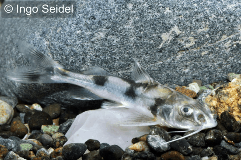 Gogangra viridescens besticht durch ein markantes Farbspiel und einen lebhaften Bewegungsdrang. Der Indische Clownwels zeigt ein ausgeprägtes Boden- und Sozialverhalten, erkundet seinen Lebensraum neugierig und interagiert aktiv mit Artgenossen. Reichlich Versteckmöglichkeiten fördern sein Wohlbefinden.