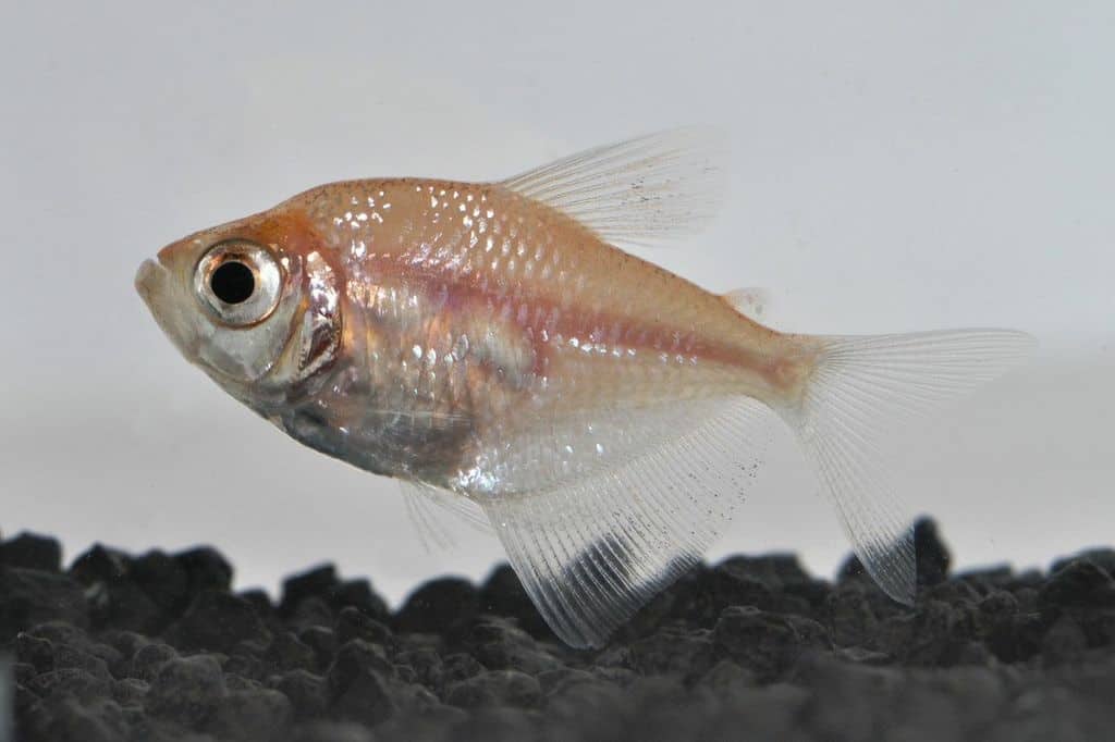 Gymnocorymbus ternetzi, der Trauermantelsalmler, gehört zur Familie der Characiden. Sein wissenschaftlicher Name lautet Gymnocorymbus ternetzi. Der Fisch hat einen schlanken, leicht abgeflachten Körper mit einer durchschnittlichen Länge von etwa 5 cm. Er zeigt eine hellgraue bis goldgelbe Färbung mit dezenten Schattierungen und klar strukturierten Flossen. In der Natur lebt er in flachen, langsam fließenden Gewässern mit sumpfigen Ufern und dichter Vegetation, die als Schutz dient. Er bildet enge Schwärme, was die Nahrungsaufnahme erleichtert und vor Fressfeinden schützt. Eine besondere Anpassung ist seine Fähigkeit, sich gut an trübe, sauerstoffarme Umgebungen anzupassen, was ihm auch in Lebensräumen mit wechselhafter Wasserqualität Überlebensvorteile verschafft. Im Aquarium benötigt er weiches, leicht saures Wasser mit moderater Temperatur und gut vegetierten Rückzugsmöglichkeiten, um Stress zu vermeiden. Einige Angaben, insbesondere zu Lebensraum und Größe, variieren in den Quellen.