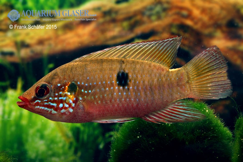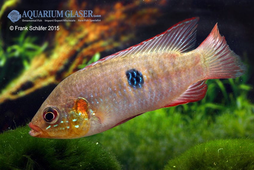 Hemichromis sp. aff. stellifer gehört zur Familie der Cichliden. Sein wissenschaftlicher Name lautet Hemichromis sp. aff. stellifer. Der Fisch zeigt ein auffallendes rotes Farbmuster mit dunklen Flecken und einem leicht schimmernden Glanz. Er erreicht im Schnitt eine Länge von etwa 9 Zentimetern. Die Flossen sind meist spitz und weisen einen markanten Rand auf. In der Natur lebt er in warmen, langsam fließenden Gewässern. Dort herrschen Temperaturen um 26 Grad Celsius und ein pH-Wert von ca. 7,8. Der Fisch passt sich gut an wechselnde Bedingungen an. Er zeigt ein ausgeprägtes Revierverhalten und verteidigt sein Gebiet energisch. Zudem sammelt er während der Brutzeit kleine Gegenstände. Im Aquarium sollten ähnliche Wasserwerte herrschen. Dicht bepflanzte Bereiche und Verstecke fördern sein Wohlbefinden. Einige Angaben in den Quellen sind nicht einheitlich. Dennoch bleibt er ein interessanter Vertreter der Roten Cichliden.