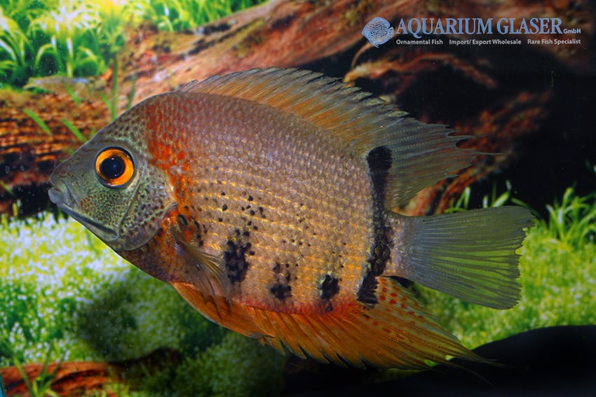 Heros efasciatus – Rotkeil-Augenfleckbuntbarsch bewohnt in der Natur überwiegend die tropischen Gewässer des Amazonasbeckens, wo er in langsam fließenden Flüssen, seichten Überschwemmungsgebieten, kleinen Seen und Sümpfen anzutreffen ist. Dort herrschen meist weiche, sauer bis neutral eingestellte Wasserbedingungen mit einem pH-Wert zwischen etwa 5,5 und 7,0, und die Temperaturen bewegen sich üblicherweise im Bereich von 24 bis 30 °C. Die Umgebung ist geprägt von dichter, üppiger Vegetation, Laubstreu, Wurzeln und Schilf, welche ausreichend Versteck- und Rückzugsmöglichkeiten bieten. Diese natürlichen Gegebenheiten sorgen für eine vielfältige und strukturierte Habitatnische, in der der Rotkeil-Augenfleckbuntbarsch optimal gedeiht und sich an die regelmäßigen periodischen Veränderungen im Wasserstand anpassen kann.