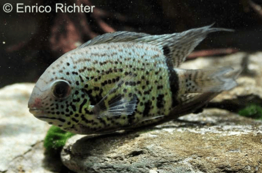Heros notatus gehört zur Familie der Buntbarsche in der Ordnung der Cichliformes. Der wissenschaftliche Name lautet Heros notatus. Der Fisch misst im Schnitt ca. 15 cm und zeigt an der Seite einen markanten dunklen Fleck nahe dem Auge. Der Körper wirkt rund und leicht abgeflacht. Er besitzt einen breiten Kopf und einen kleinen, gerundeten Maulbereich. In seinem natürlichen Lebensraum, meist den langsam fließenden Gewässern des Amazonasbeckens, gedeiht er in weichem, leicht saurem Wasser mit Temperaturen um die 26 °C. Dort leben viele andere Arten, die in symbiotischen Beziehungen stehen. Heros notatus zeigt ein ausgeprägtes Territorialverhalten und betreibt eine intensive Brutpflege. In Aquarien benötigt er ähnliche Wasserparameter sowie Versteckmöglichkeiten, um seinen natürlichen Stressfaktoren zu begegnen. Wissenschaftliche Angaben sind teilweise unterschiedlich, weshalb manche Messwerte als Durchschnittswerte zu betrachten sind.