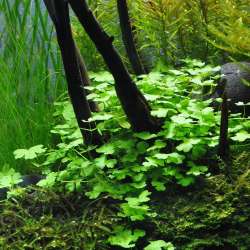 Hydrocotyle cf. tripartita bildet bodendeckende Matten, die sich schnell über den Substrat verbreiten. Durch ihre kriechende Wuchsform lässt sie sich ideal als Vordergrundpflanze einsetzen. Sie passt sich flexibel an verschiedene Lichtverhältnisse an, weshalb sie in Aquarien beliebte Verwendung findet. Die Pflanze reagiert sensibel auf Veränderungen in der Wasserchemie und bietet eine natürliche Versteckmöglichkeit für kleine Aquarienbewohner. Mit ausgeprägten Wurzeltrieben fördert sie zudem die Stabilität im Bodengrund.
