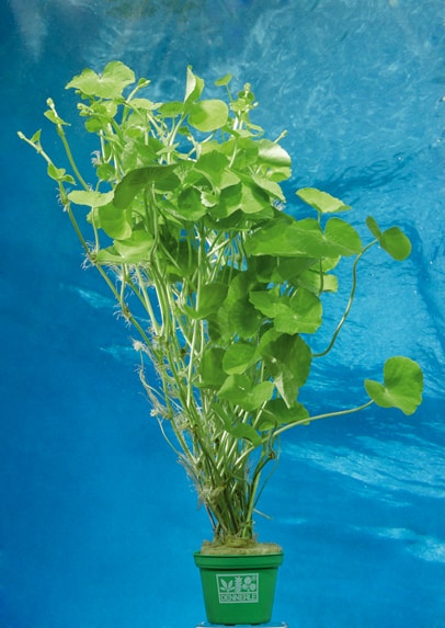 Die Pflanze besticht durch kleine, rundliche Blätter, die oft leicht gewellt und mit feinen Zähnchen am Rand versehen sind. Ihre Blätter wirken fast herzförmig und verfügen über eine hellere Mitte, was ihr den spezifischen Namen verleiht. Die schlanken, graugrünen Stängel tragen die zarten Blätter und breiten sich krautartig aus. Diese feinen Strukturen sorgen für ein lockeres, federleichtes Erscheinungsbild, das sowohl im aquatischen als auch im terrestrischen Bereich harmonisch wirkt.