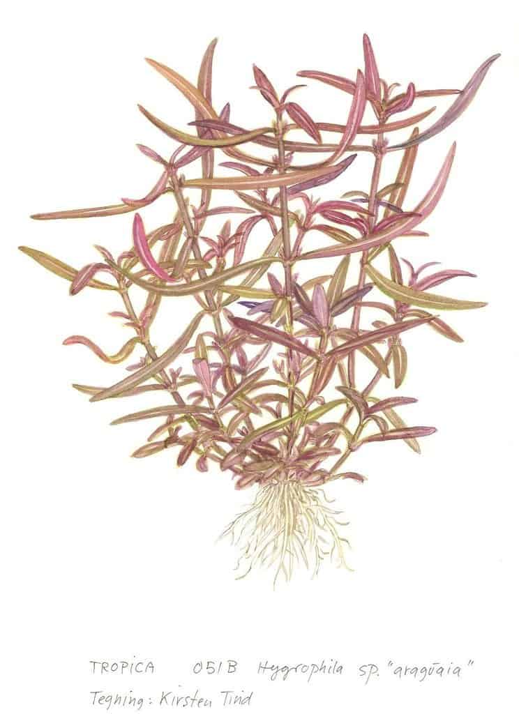 Hygrophila sp. „Araguaia“ wächst in dicht bewachsenen Gruppen und erreicht rasch eine dichte Pflanzendecke. Die Pflanze bildet sowohl untergetauchte als auch teils emersive Blätter, was beim Aquascaping vielseitige Gestaltungsmöglichkeiten bietet. Ihr schnelles Wachstum unterstützt die Reduzierung von Nährstoffkonzentrationen im Wasser. Dabei fungiert sie als natürlicher Filter und trägt zum ökologischen Gleichgewicht bei. Die robusten Stängel und das verzweigte Wurzelwerk fördern auch das Einwachsen kleiner Mitbewerber, was besonders in naturnahen Aquarien geschätzt wird.