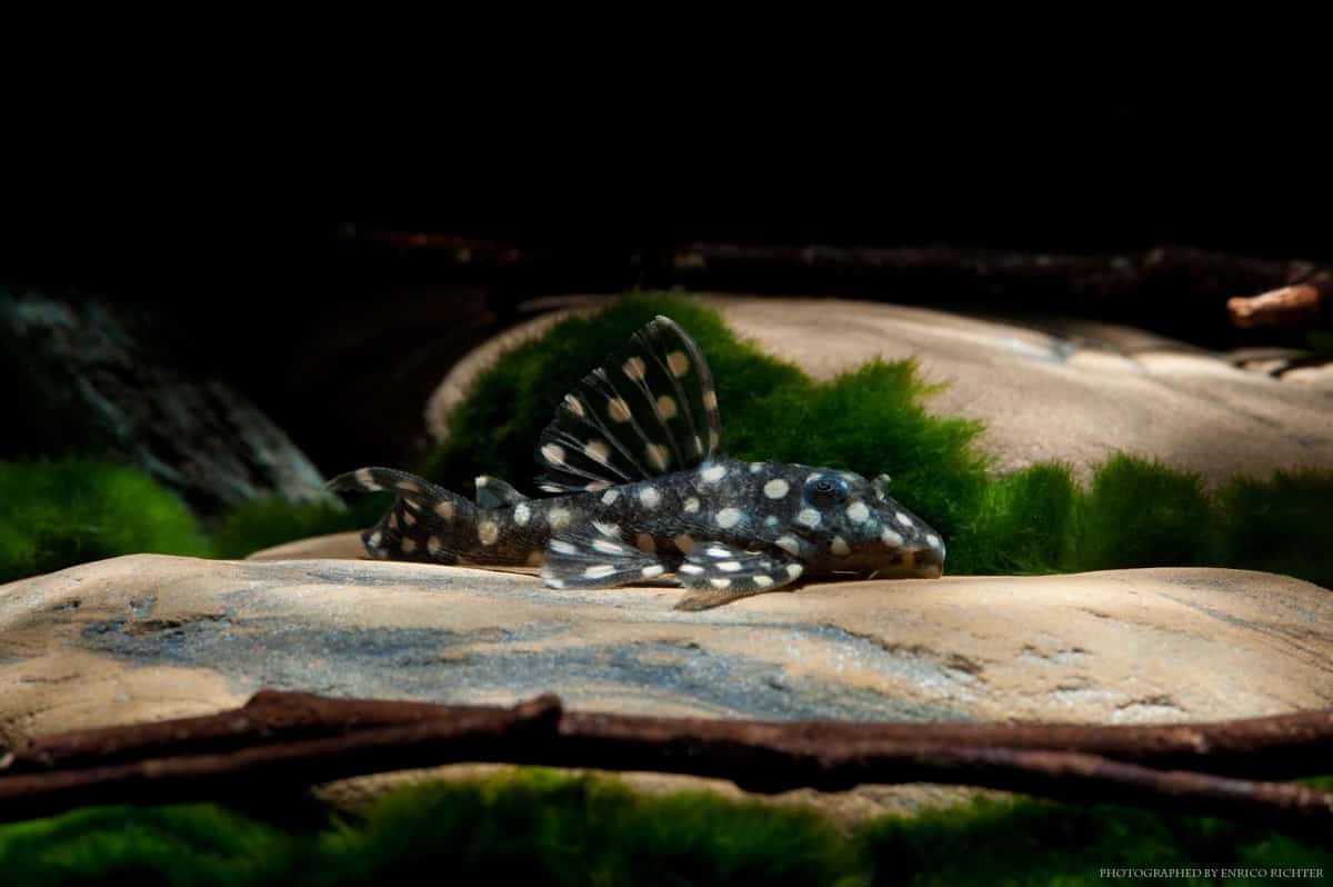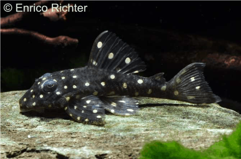 Der Hypancistrus sp. (L 201) gehört zur Familie der Loricariidae in der Ordnung der Siluriformes. Der Fisch zeigt einen gedrungenen, mit Knochenplatten geschützten Körper. Im Schnitt erreicht er etwa 10 cm Länge. Sein dunkelgrauer bis fast schwarzer Körper trägt helle, runde Flecken, die charakteristisch sind. Er stammt aus dem Amazonasgebiet, wo klares, sauerstoffreiches Wasser in kleinen Flüssen und Röhrenläufen fließt. Dort herrscht eine durchschnittliche Temperatur von ca. 26 °C und ein niedriger pH-Wert. Er ist nachtaktiv und sucht tagsüber enge Verstecke in Steinspalten. Diese Verhaltensweise unterstützt ihn, sich vor Fressfeinden zu schützen. Im Aquarium benötigt er stabile Wasserwerte, eine gute Wasserumwälzung sowie zahlreiche Versteckmöglichkeiten. Die Angaben unterliegen teilweise Schwankungen, weshalb weitere Beobachtungen sinnvoll sind.