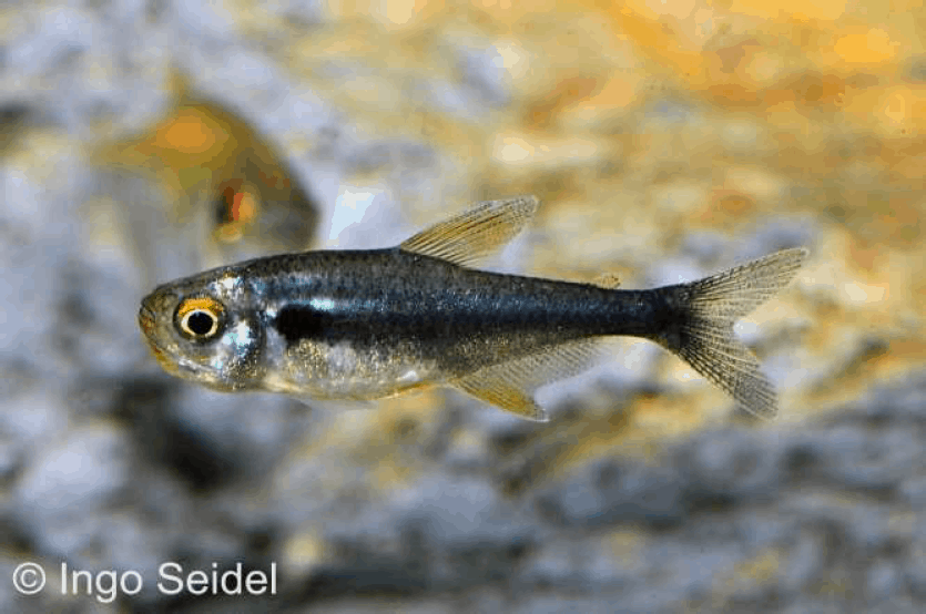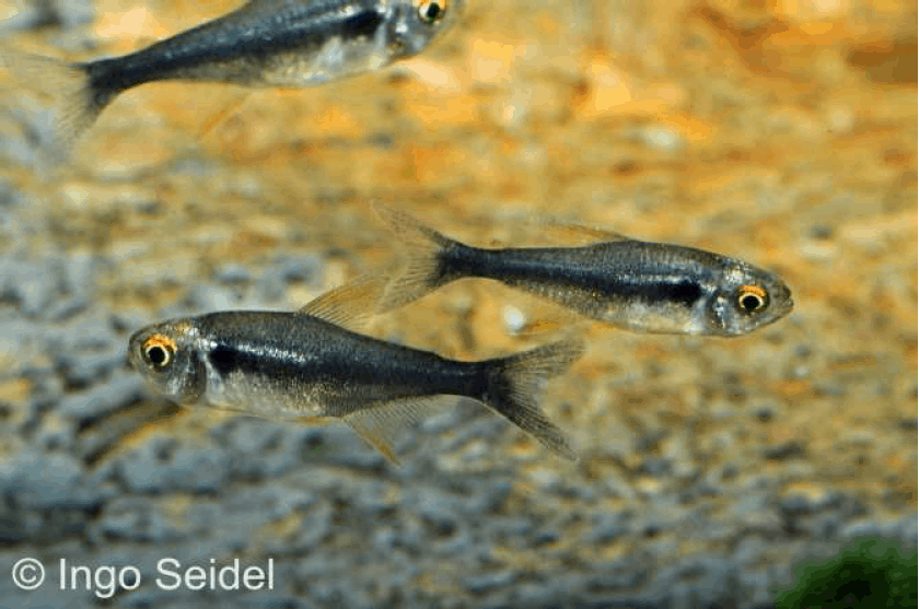 Hyphessobrycon herbertaxelrodi – Schwarzer Neon zeigt ein schimmerndes Äußeres, akzentuiert durch einen markanten, dunklen Streifen. Das harmonische Schwarmverhalten und aktive Fütterungsreaktionen verleihen ihm einen individuellen Charme. Es sind keine besonderen Merkmale bekannt.