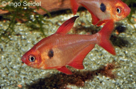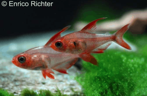 Hyphessobrycon sweglesi, auch Roter Phantomsalmler genannt, gehört zur Ordnung Characiformes und Familie Characidae. Dieser kleine Süßwasserfisch, dessen Länge im Mittel etwa 4 cm beträgt, zeigt einen leuchtend roten Bauch und hell schimmernde Flanken mit einem feinen schwarzen Streifen. Im natürlichen Lebensraum, meist warmen Fließgewässern tropischer Regenwälder, finden sich weiche, laubreiche Böden und geringe Sauerstoffwerte. Die Art lebt in dichten Schwärmen, was den Schutz vor Fressfeinden verbessert. Einige Individuen zeigen ein schnelles Fluchtverhalten bei Störung. Im heimischen Aquarium gedeiht er bei Temperaturen von 24 bis 28 Grad und leicht saurem bis neutralem Wasser. Erwähnte Angaben können teils schwanken, da Messwerte oft als Durchschnittswerte erfasst werden.