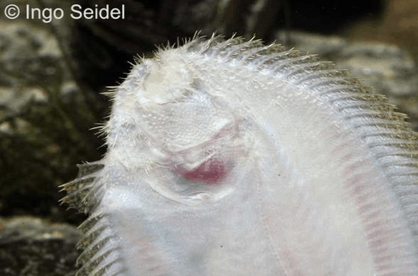 Hypoclinemus mentalis – Peru-Süßwasserflunder zeichnet sich durch seinen abgeflachten Körper und versetzte Augen aus, die eine raffinierte Tarnung ermöglichen. Ein ruhiges Schwimmverhalten und behutsame Fütterung unterstreichen seine besondere Haltung. Es sind keine besonderen Merkmale bekannt.