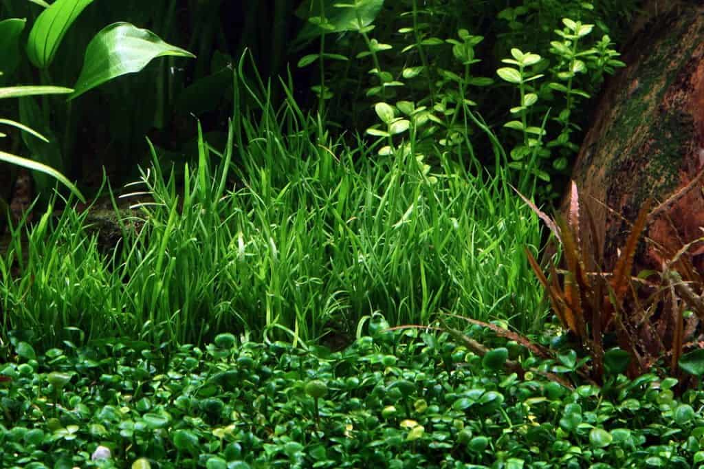 Die Pflanze zeichnet sich durch schmale, biegsame Blättchen aus, die an Gräser erinnern. Ihre Blätter besitzen eine glatte Oberfläche und bilden dichte Teppiche. Die feinen Strukturen wirken filzig und verleihen einen natürlichen Eindruck. Wurzel- und Rhizomsysteme bilden ein dichtes Netzwerk, das Stabilität verleiht. Diese Wurzelstrukturen dienen als natürliche Verankerung im Kies- oder Sandsubstrat und unterstützen die Aufnahme von Nährstoffen.