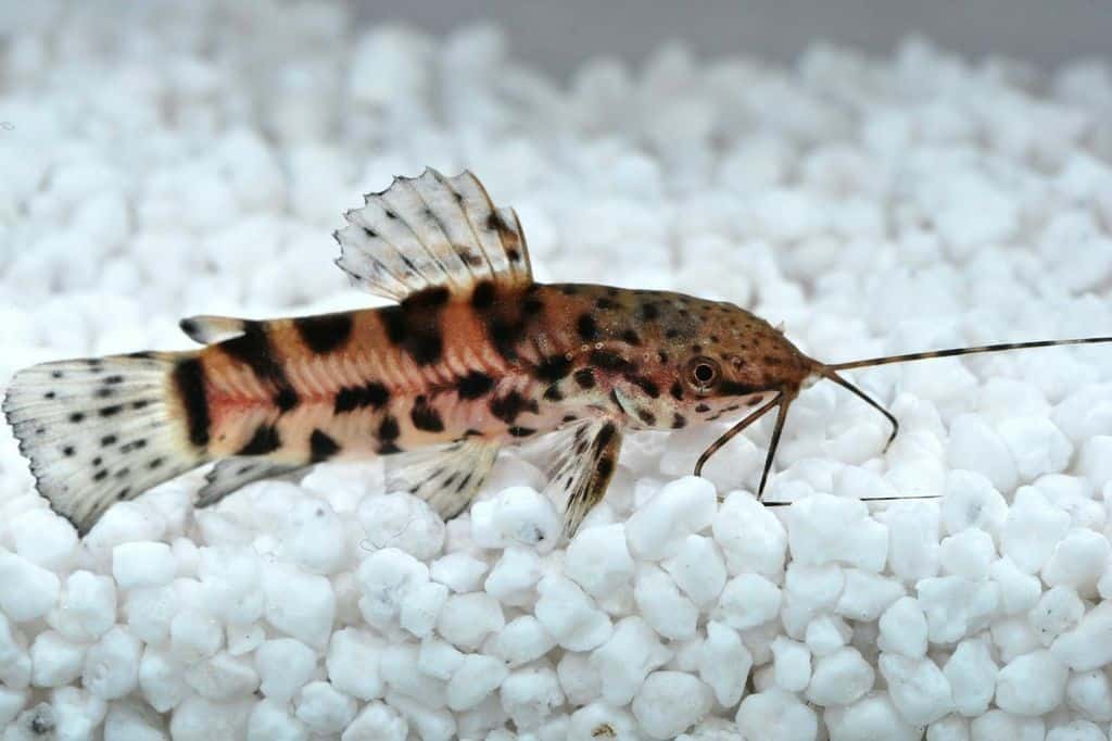 Megalechis thoracata besticht durch auffällig gemusterte Flanken und markante Schwielen. Der aktive Fisch zeigt ein lebhaftes Erkundungsverhalten und benötigt vielfältige Versteckmöglichkeiten. Seine robuste Erscheinung und einzigartige Musterung machen ihn zu einem besonderen Blickfang.