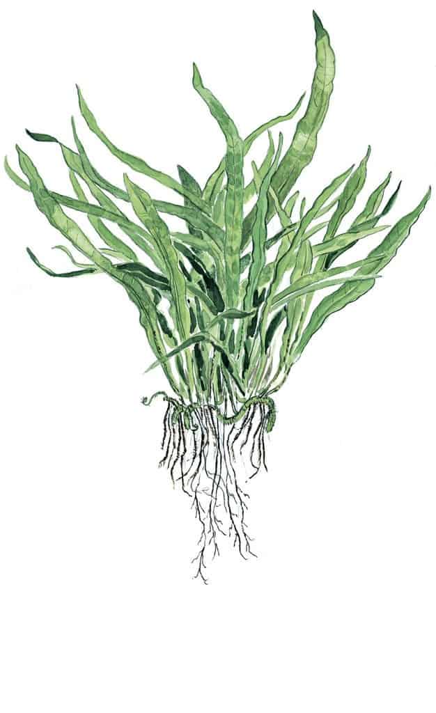 Microsorum pteropus “Narrow” entwickelt eine übersichtliche, kompakte Wuchsform. Die Pflanze bildet keine tief ausgebildeten Wurzeln, sondern zwar ein oberflächliches Rhizom, das sich an Substraten festsetzt. In Aquarien wird sie bevorzugt an Steine oder Holz befestigt. Ihre langsame, aber stetige Wachstumsgeschwindigkeit sorgt für natürliche Akzente im Becken. Künstlich gestaltete Landschaften erhalten dadurch eine organische Note, die für ein harmonisches Gesamtbild sorgt.