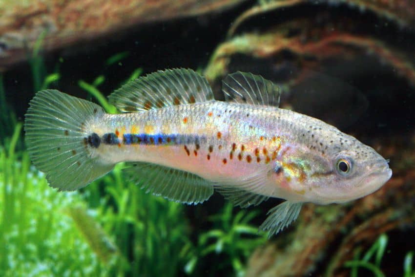 Mogurnda adspersa besticht durch markante Tupfen und einen robusten Körperbau. Der Fisch zeigt ein ausgeprägtes Bodenverhalten, erkundet lebhaft sämtliche Beckenbereiche und reagiert empfindlich auf Veränderungen. Seine elegante Erscheinung und verspielte Art machen ihn zum besonderen Blickfang.