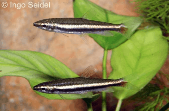 Nannostomus digrammus besticht durch zwei markante Seitenstreifen und einen schlanken, silbrig glänzenden Körper. Der soziale Schwarmfisch zeigt ein agiles Bewegungsverhalten, reagiert auf geschickte Aquariengestaltung und benötigt strukturierte Rückzugsmöglichkeiten.