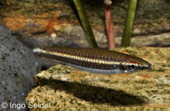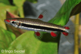 Der Nannostomus trifasciatus besticht durch sein filigranes, dreifach verlaufenes Streifenmuster und einen schlanken Körperbau. Der friedliche Fisch bildet enge Schwärme und zeigt ein elegantes, zurückhaltendes Verhalten. Schonende Pflege in reich bepflanzten Aquarien unterstreicht seine natürliche Anmut.