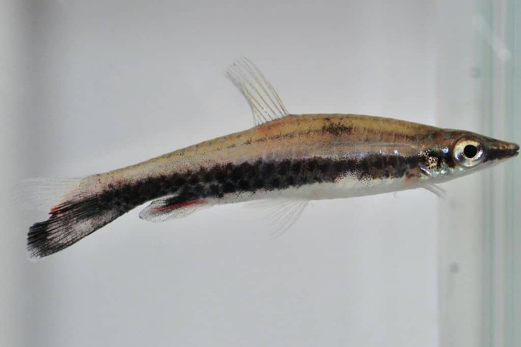 Nannostomus unifasciatus, auch Schrägsteher genannt, gehört zur Familie der Lebendborstenfische. Der Fisch hat einen schlanken und leicht geneigten Körper. Seine Länge liegt im Schnitt bei etwa 3,5 cm. Der Körper trägt einen schmalen, dunklen Streifen, der schräg verläuft. Er lebt in flachen Gewässern Südamerikas, wo dicht bewachsene Ufer und Wasserpflanzen Schutz bieten. Die Natur zeigt oft lauwarme Temperaturen von etwa 26 Grad. Schrägsteher hängen häufig an Pflanzen und schwimmen langsam, was sie gut getarnt macht. Sie reagieren empfindlich auf Wasserwertschwankungen. Im Aquarium gedeiht er in gut bepflanzten Becken bei konstanten Temperaturen und stabilen Wasserwerten. Angaben zu Größe und Verhalten schwanken in den Quellen.