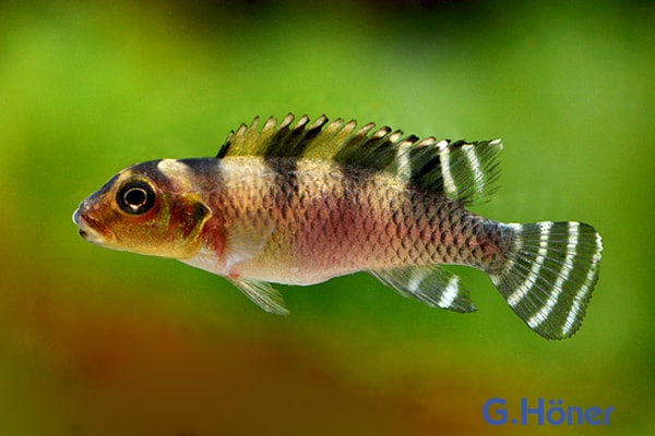 Männchen weisen ein intensiver ausgeprägtes, kontrastreiches Zebra-Muster mit teilweise verlängerten und spitz zulaufenden Flossen (insbesondere im Bereich der Anal- und Rückenflosse) auf, während Weibchen insgesamt rundlicher gebaut sind und ein dezenteres, weniger markantes Streifenmuster präsentieren, wobei ihre Flossen weniger ausgeprägt verlängert erscheinen.