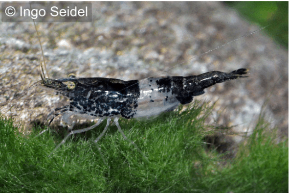 Neocaridina davidi ist eine kleine Süßwassergarnele, die oft als Carbon-Rili-Zwerggarnele bekannt ist. Sie gehört zur Ordnung der Zehnfußkrebse und wird der Familie Atyidae zugeordnet. Ihr wissenschaftlicher Name lautet Neocaridina davidi. Die Garnele erreicht im Schnitt eine Länge von etwa 2,5 cm. Ihr Körper ist schlank und durchsichtig, mit einer feinen, dunklen Linie, die ihre Körperseiten ziert. Die Beine und Fühler sind dünn und fein strukturiert. Einige Exemplare zeigen einen leichten Farbverlauf, der sich im Licht ändert.